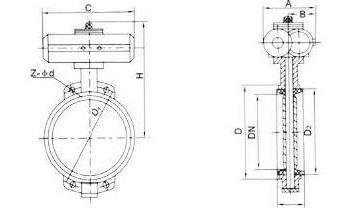 气动对夹式软密封蝶阀 外形尺寸